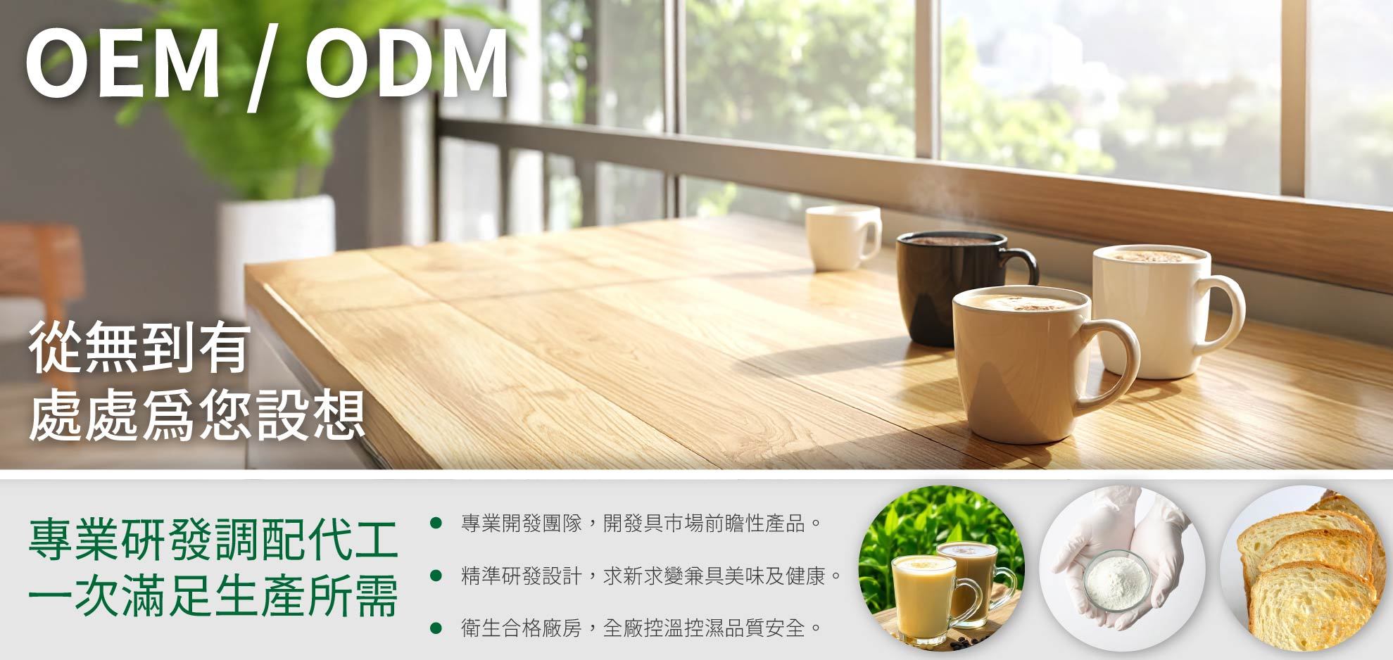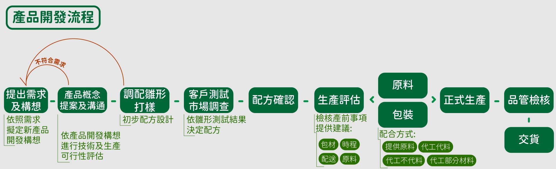 ● 代工不代料:進料、攪拌、分裝、包裝。